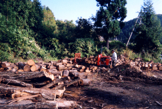 | きのこ原木も11月〜3月の間、その時期が一番適しています。きのこ原木に菌を植えつけ栽培している方々はその時期に限ります。薪もその時期に伐採・加工した品が1番よく燃焼します。 |