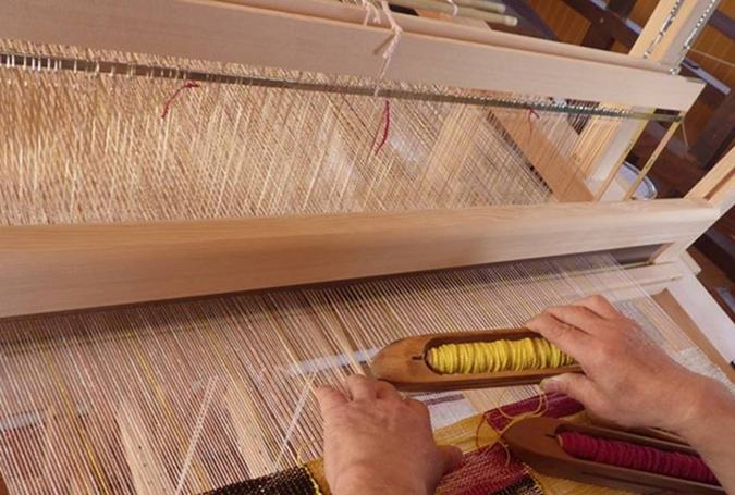 ここでは、従来の着物や帯を織っている手織り機に変わり、広幅の手織り機から生まれるファブリック商品を紹介します。