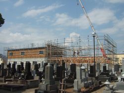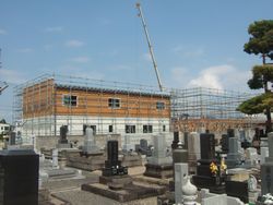 境内北側の土地の所有者が代わり、墓地のぎりぎりに2棟のアパートが 建ち始めました。 まあ、高層ビルでなくてよしと思うことにしましょう。 |