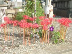彼岸花は、お彼岸を2週間過ぎて から咲きました。咲く要因は温度差 だという事ですが、何の温度差なの かな? 関東地方はもっと早いです。 |