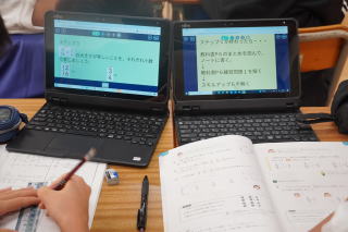 高学年ではタブレットを活用した授業が進んでいます。今日は5年生の算数で活用の場面がありました。自分の考えをノートにまとめ、それをカメラで画像に収め、みんなで共有しました。友達の考えを自由に見ることができる、教師が子ども達の考えを把握し全体で共有するなど、効果的な活用がなされています。ブログはその様子、そして6年生の授業の様子です。
