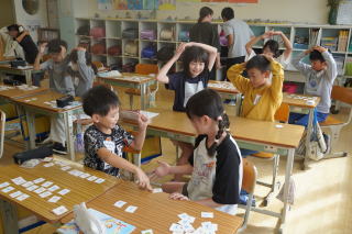 全校縦割り遊び(縦割り班ごと)がお昼の時間に行われました。あちこちで笑顔があふれていました。ブログはその様子です。