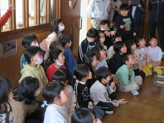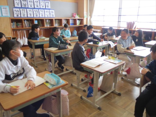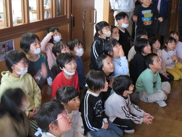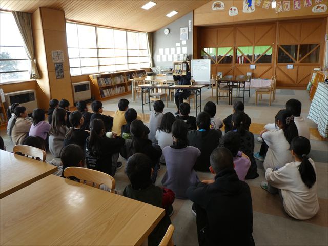 1年生が、国語で習った「たぬきの糸車」を、みんなで分担して音読をしました。破れ障子や糸車などの小道具を用いた、しっとりとした発表でした。寒い中、参観にいらっしゃった保護者の皆様、大変ありがとうございました。