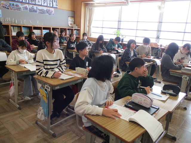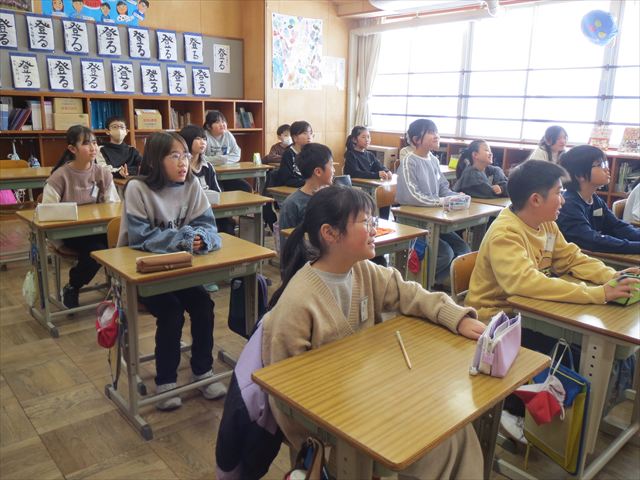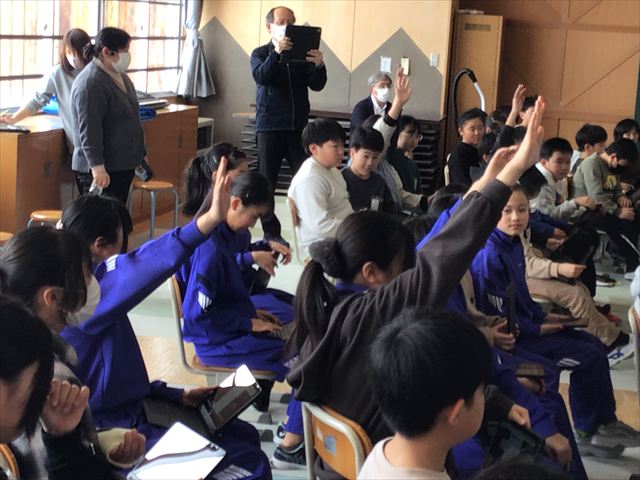 川西町教育委員会指導主事、秋山多恵子先生、佐野貴久先生をお招きして、5年生が、国語「想像力のスイッチを入れよう」の題材で授業研究会を行いました。筆者が述べる”想像力のスイッチ”とは?、どうしてその言葉を使ったのか、などについて考える授業でした。お二人の先生方、ご指導をいただき大変ありがとうございました。