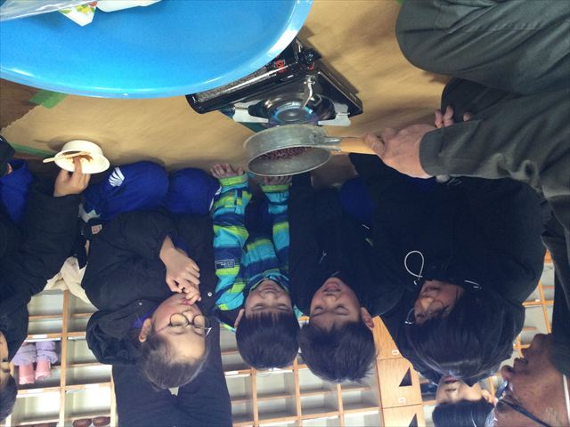 全校児童で、縦割り班ごとに、芋煮会を行いました。丹野センター長様、大河原園長先生様をはじめ、お世話になっている17名のご来賓の皆様をお招きして、一緒にいただきました。里芋は6年生が、ねぎは5年生が栽培・収穫したものです。ご来賓の皆様、大変ありがとうございました。