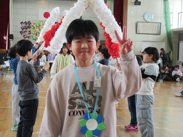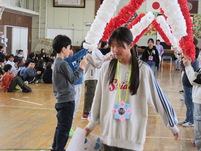 これまで学校のリーダーとして活躍してきた6年生に、在校生が感謝の思いを伝えました。温かい雰囲気が体育館いっぱいに広がって、とても素敵な会になりました。